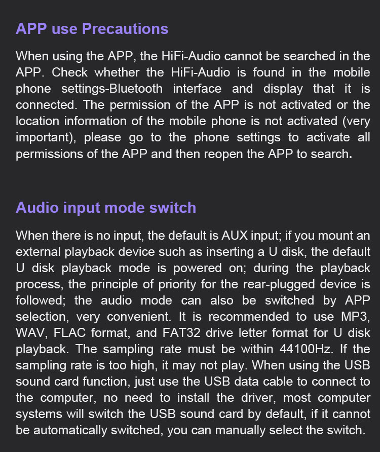 - Supported USB flash drive lossless format: MP1/MP2/MP3/WMA/APE