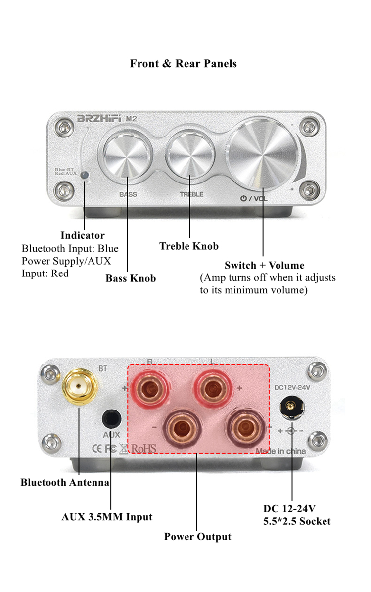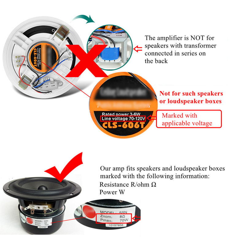 - Recommended 4-8 inch 4-8Ω passive stereo speakers