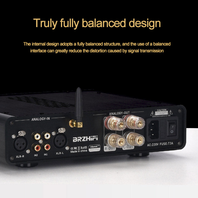 BRZHIFI PA-10 70Wx2 HiFi Power Amplifier Full Balance Remote Control Amplifier Bluetooth CSR8675