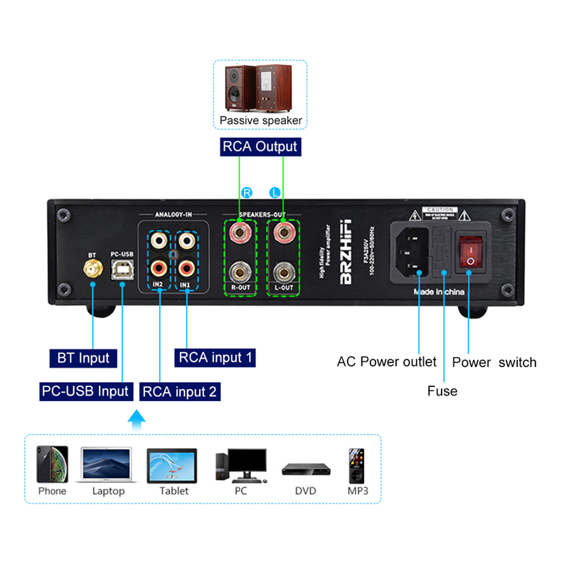 - Dedicated full power supply: unique three-stage filter protection output and feedback correction design. According to your speaker power and sound size, variable stepless adjustment ensures rapid response when high-power output, low-power time-consuming, lower temperature, energy saving and environmental protection