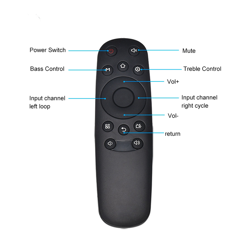 - Wireless remote control, high-definition Bluetooth, adjustable treble and bass