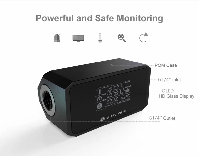 Bykski B-TFC-CS-X PC Water Cooling Flow Meter Thermometer Temperature Sensor with OLED Display