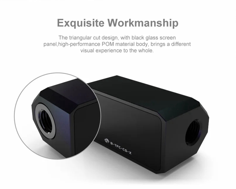 The Bykski Inline Flow Meter and Thermometer Safety Module offers a real-time reading of your inline flow rate. The in-line block uses industry-standard G1/4" fittings. The safety module also features real-time temperature reading as well making it a complete safety device. The all-black visual design is stunning and will match easily in custom layouts!