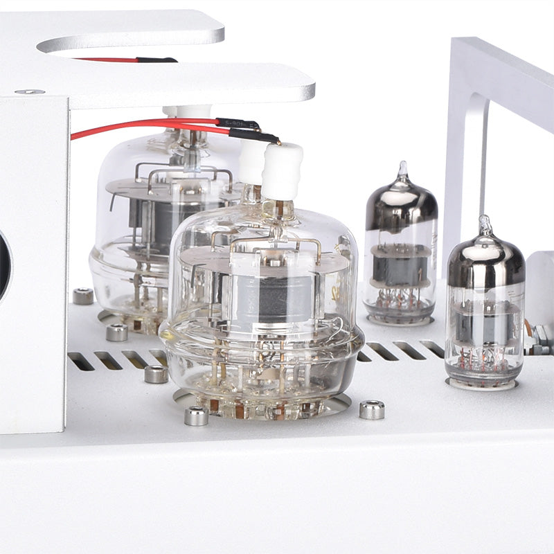 FU32 tubes features a strong sense of music and overtones, high-frequency sound is delicate, vocals are real and natural, and you will not be tired for a long time. Each channel of this machine uses a FU32 push-pull output and a 6N2 tube, which is very suitable for driving bookshelf speakers, and the effect is very good. Very low noise, dark background, you can listen to music quietly. The whole machine adopts a large number of imported components such as Japanese advanced filter capacitors, potentiometer for ALPS, HIFI special transformer, etc.. The effect and sound quality are naturally guaranteed.