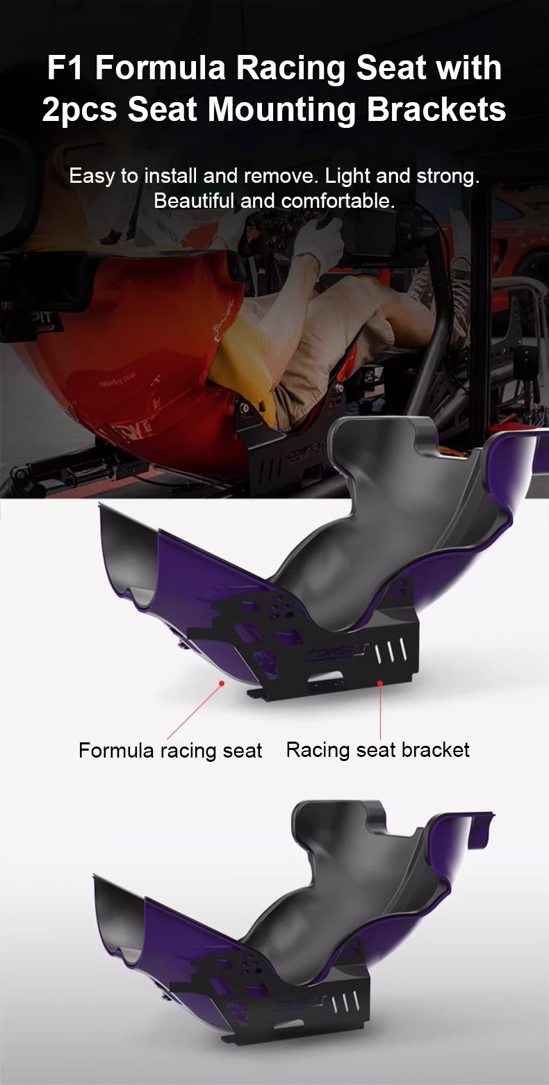 CONSPIT F1 Formula Racing Seat Sim Racing Seat (Black & Purple) + 2PCS Seat Mounting Brackets