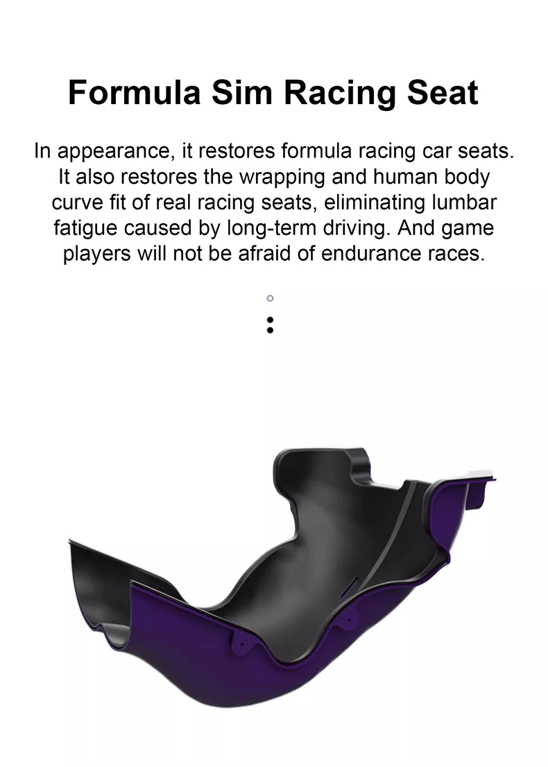 In appearance, it restores formula racing car seats. It also restores the wrapping and human body curve fit of real racing seats, eliminating lumbar fatigue caused by long-term driving. And game players will not be afraid of endurance races.