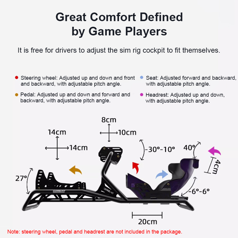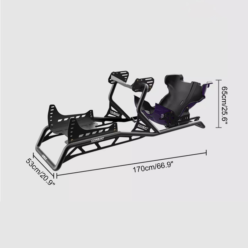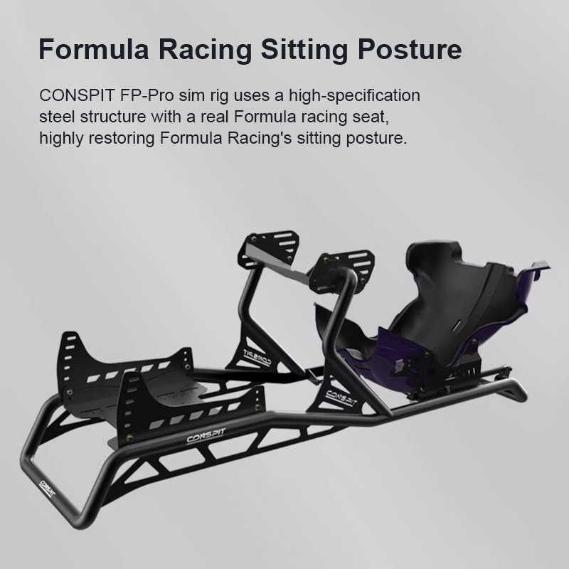 - Formula racing sitting posture: CONSPIT FP-Pro sim rig uses a high-specification steel structure with a real Formula racing seat, highly restoring Formula Racing's sitting posture.