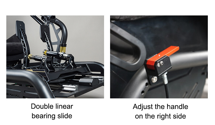 - The angle of steering wheel, the position of the seat and pedals can be adjusted independently