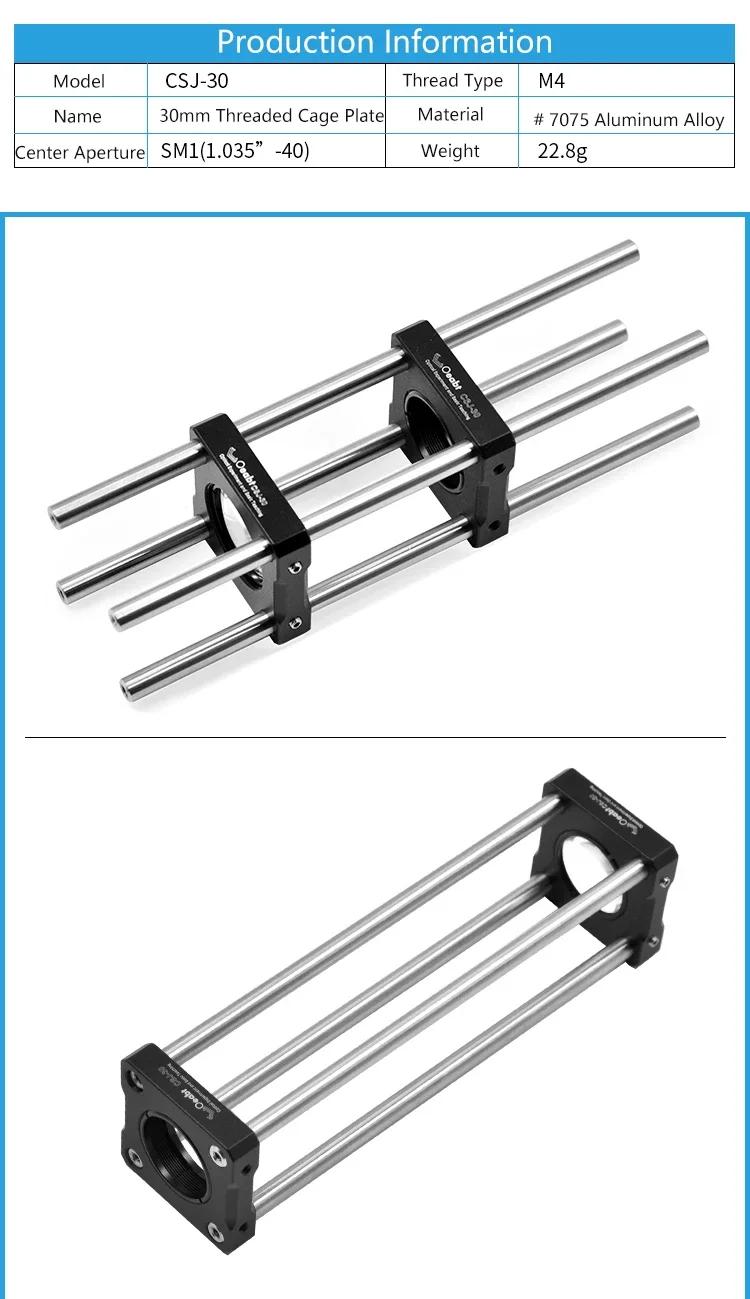 - More conveniently, the cage plate contains an M4 screw hole for installing extension rods. At the same time, the cage plate can be paired with RMS adapters to integrate threaded components such as the objective lens into the 30mm cage system.