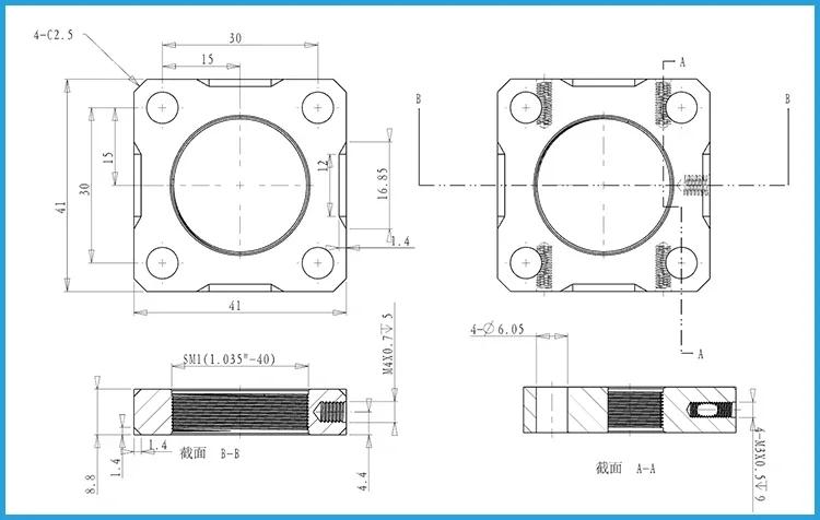 - There is a SM1 (1.035"- 40) threaded hole in the middle, compatible with our Ø1 inch lens casing. You can also directly install the thickest 0.2-inches (5mm) Ø1-inch optical parts at the center of the threaded hole, including two CSK3 snap ring.