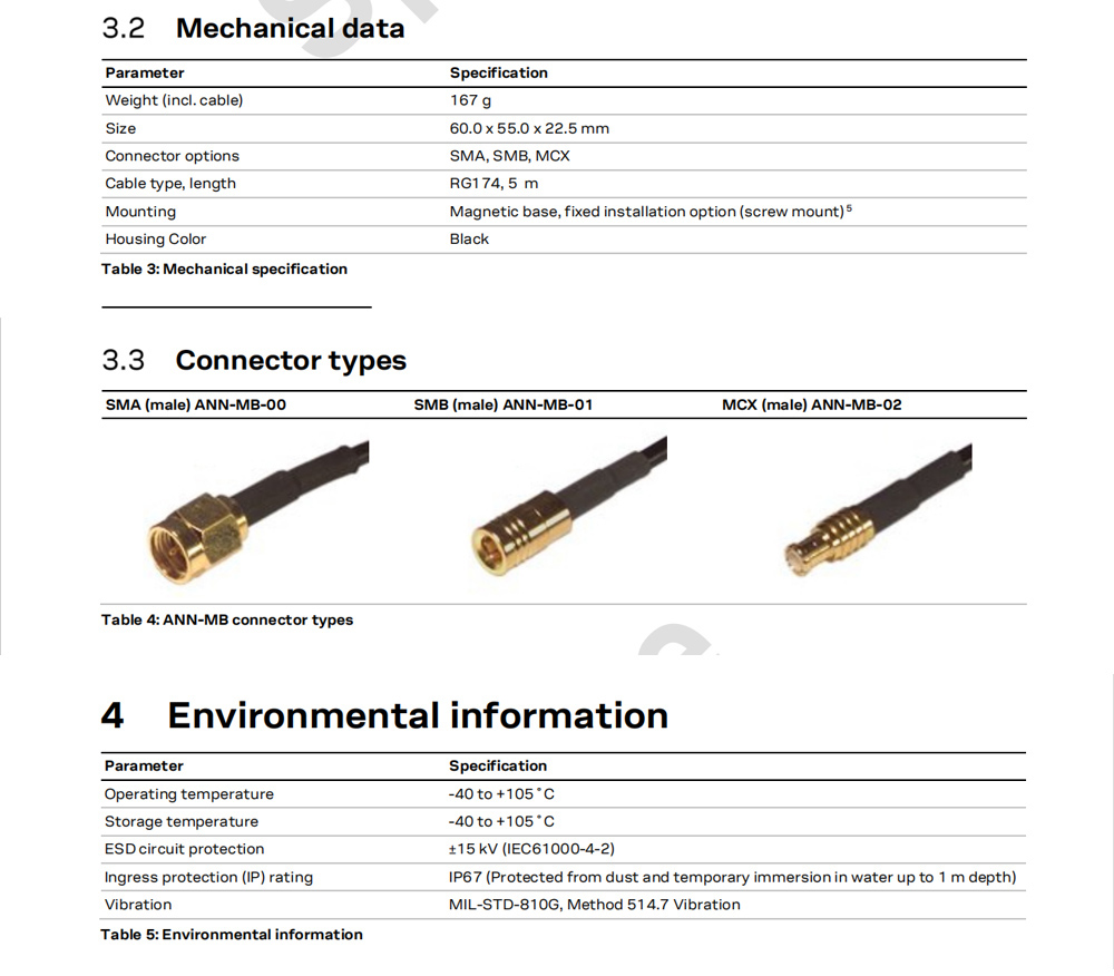 For u-blox ANN-MB multi-band (L1, L2/E5b) active GNSS antennas are designed to reduce time to market for the next generation of high precision GNSS applications, which require highly accurate location information. The compact design, excellent price to performance ratio, and versatile mounting and connector choices provide customers with fast, easy, and reliable multi-band antenna solutions. The ANN-MB antenna is a perfect match for the latest u-blox F9 platform including the ZED-F9P module, thus providing customers with a valuable antenna solution to minimize design-in efforts.