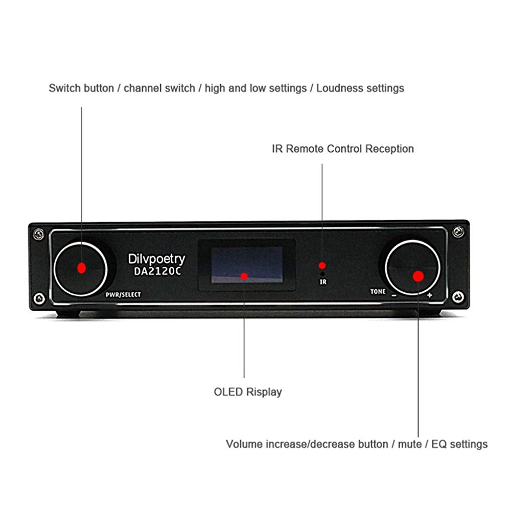 DAC Amplifier 120W+120W 24Bit/192kHz Bluetooth 4.2 USB Coaxial Optical with Remote Control DA2120C