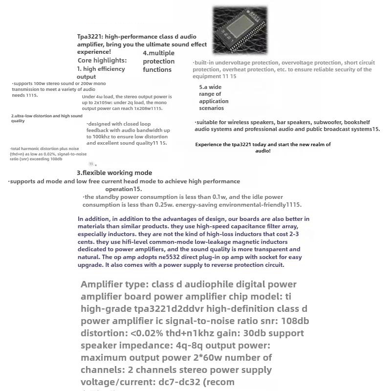 - Power amplifier chip model: TPA3221D2DDVR HD class D power amplifier IC for TI