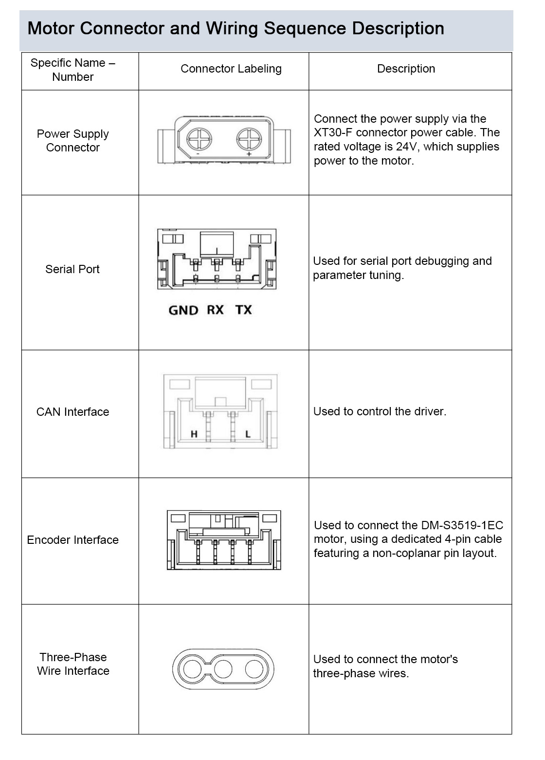* Motor Under-voltage Protection: If the power supply voltage is below the set value, the motor will exit "Enable Mode". Power supply voltage should not be less than 15V.