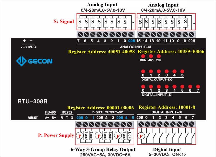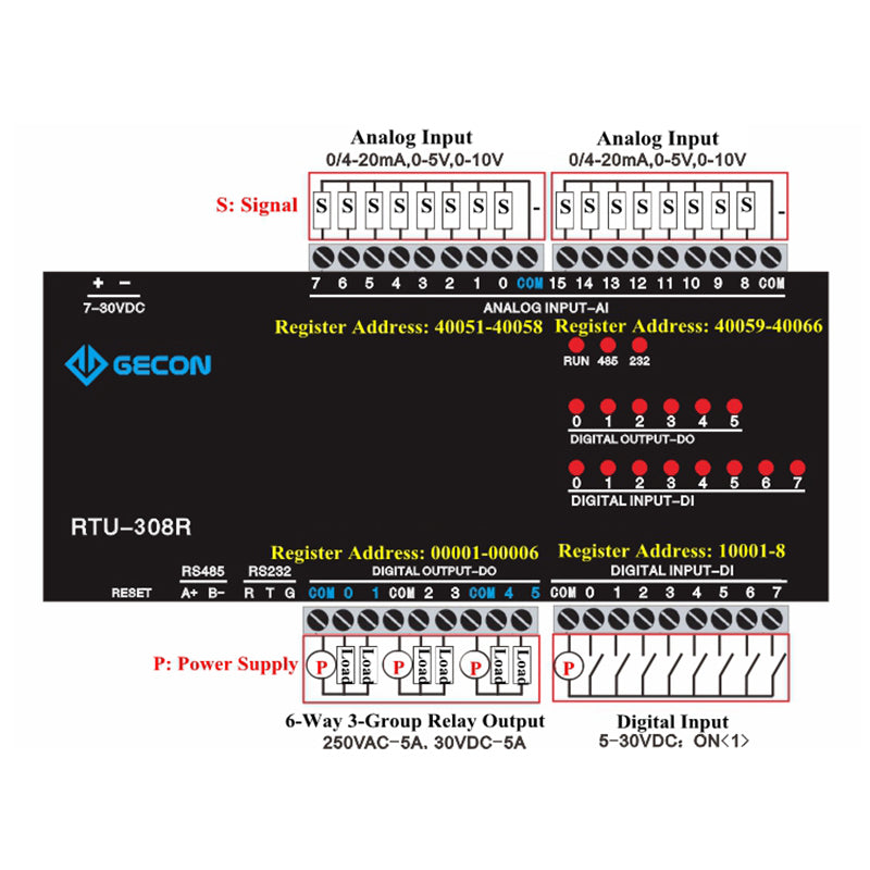 Data Acquisition Module Industrial Controller For Modbus RTU RTU-308R 16AI + 8DI + 6DO RS485
