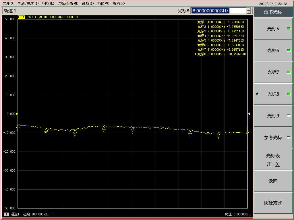 8. Input loss and standing wave parameters (refer to the measured value of vector network)