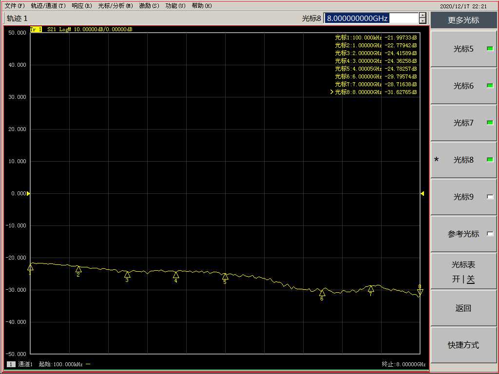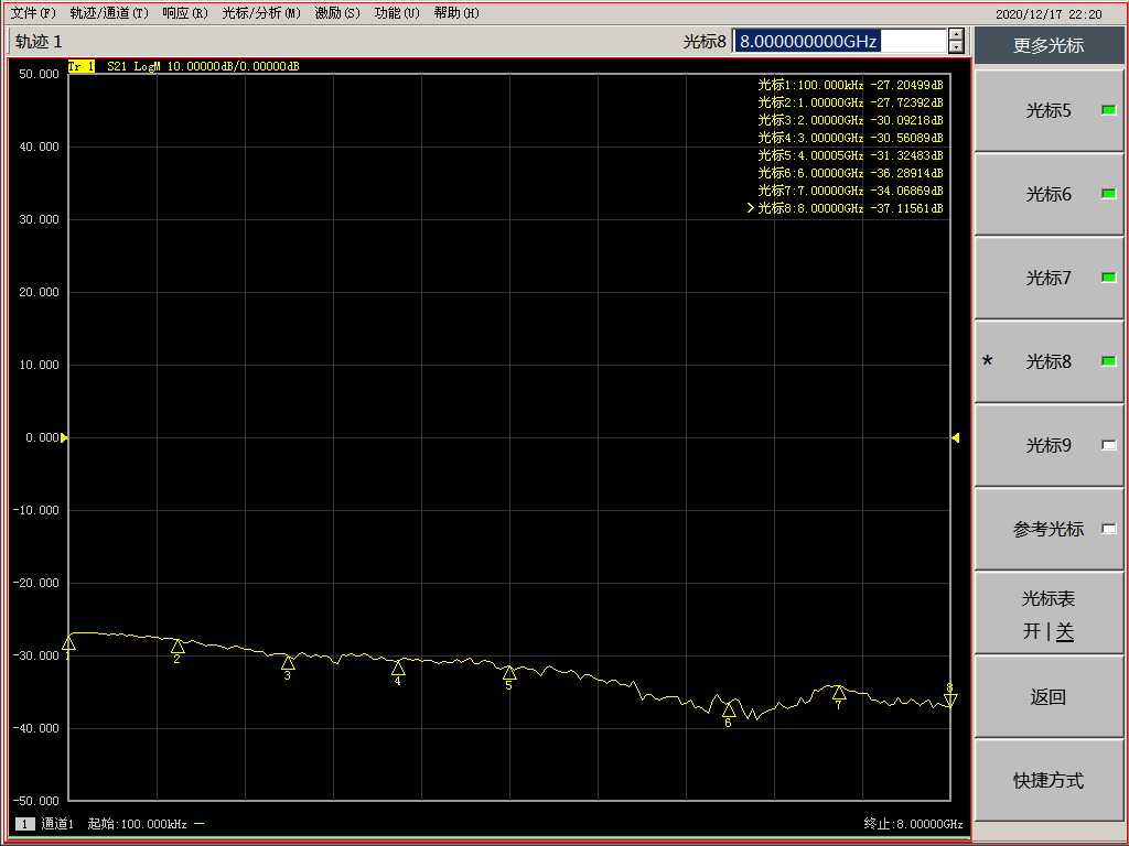 5. Set to 20DB attenuation S parameter