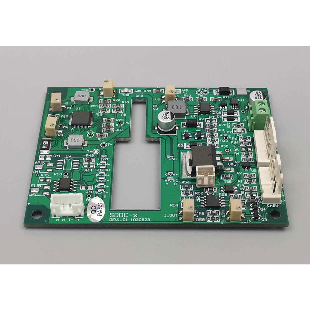 - The SDDC series DFB laser driver board is compact in design and integrates LD driver and TEC high-precision temperature control. It supports DFB lasers with two different pin definitions in the communication industry and industrial laser industry, making it an ideal driver source for DFB lasers. The LD driving part of this driver board can achieve a current of 2A and has analog and modulation signal interfaces. The analog modulation speed can range from 100kHz to CW. The design accuracy of the LD temperature control part can reach 0.01 degrees. All parameters of this board can be factory set according to customer requirements, including rated current, default set temperature, and TEC rated current and voltage.