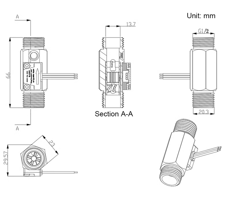 - Flow pulse characteristics: (11*Q) Q=L/min±3%, that is, 660 pulses per liter of water
