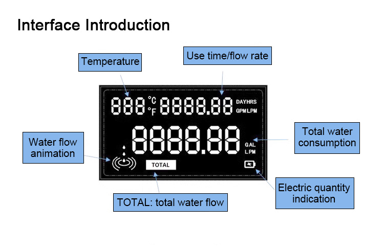 - The display screen can only be used with our customized low-power flow meter. When the screen is used with flow meters by other produces, the quality of the flow meters cannot be guaranteed. The screen can display water flow, instantaneous flow, temperature and total flow. However, due to the different frequency of flow meters of different sizes, it is necessary to adjust the K value constant of the display according to different flow meters when using it to display the accurate flow value.