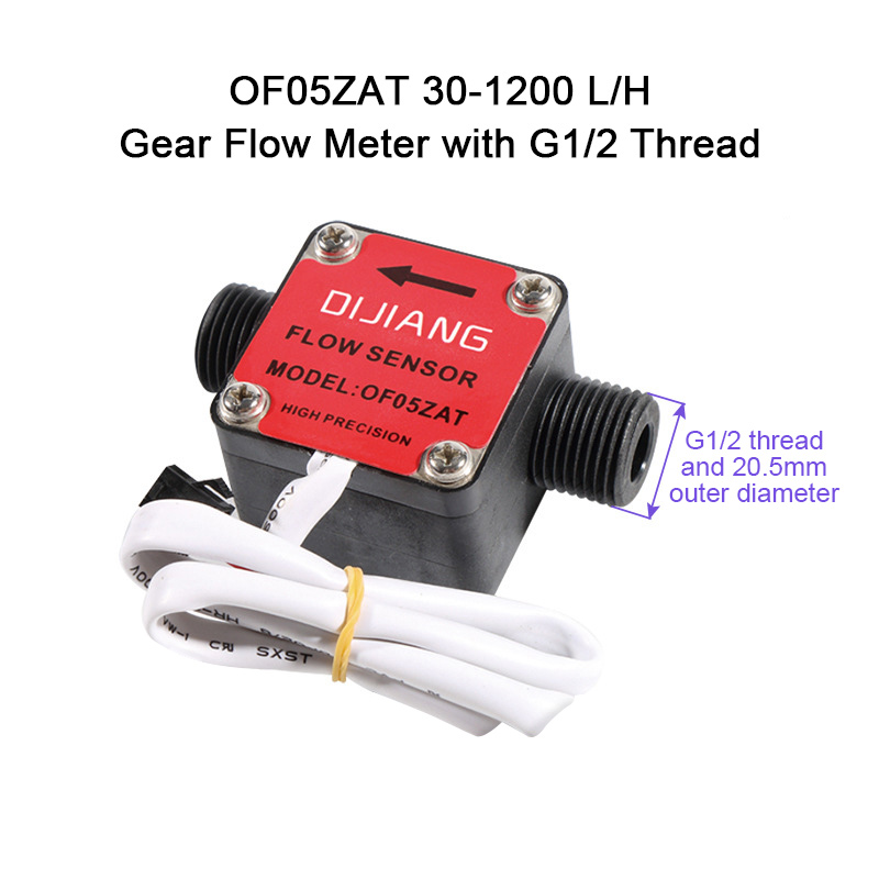 DIJIANG OF05ZAT 30-1200 L/H Gear Flow Meter Water Flow Sensor w/ G1/2 Thread for Diesel & Engine Oil