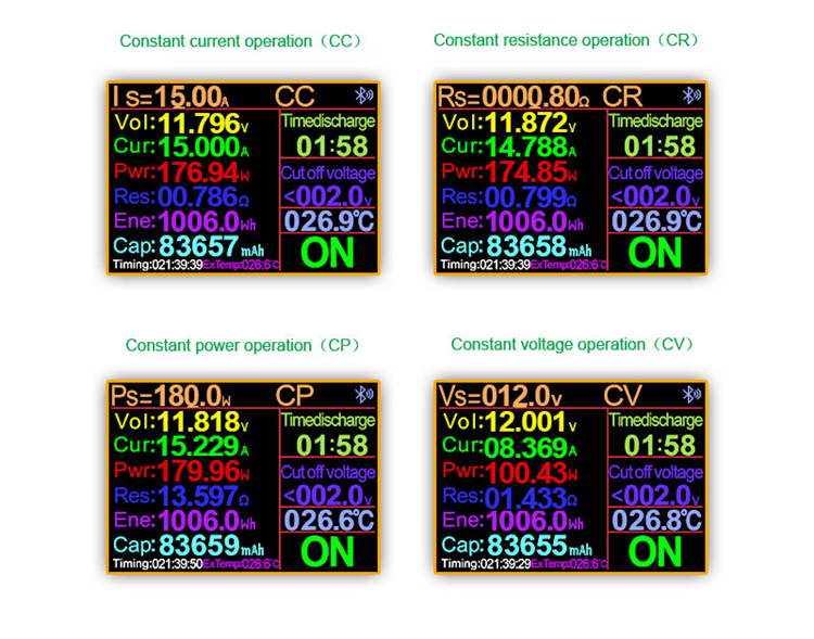 - Four discharge modes: constant current, constant power, constant resistance, constant voltage.