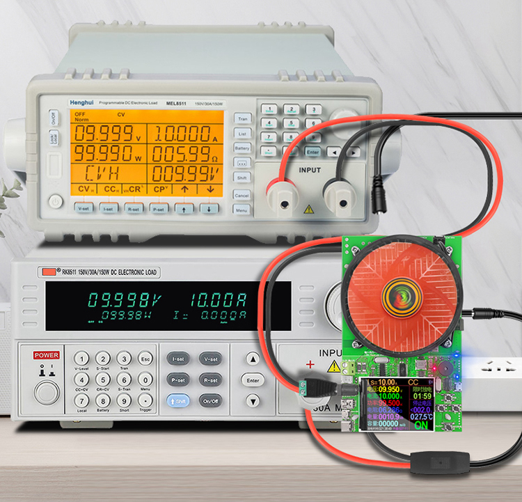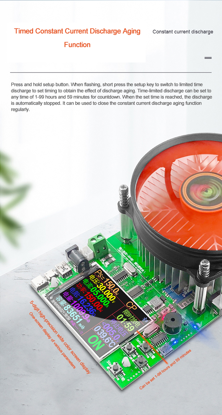 Built-in intelligent temperature control fan switch and temperature control speed design, reduce fan noise and extend fan life. Fast speed and strong wind. Support 150W discharge uninterrupted work, suitable for long-term discharge or factory frequency aging test.
