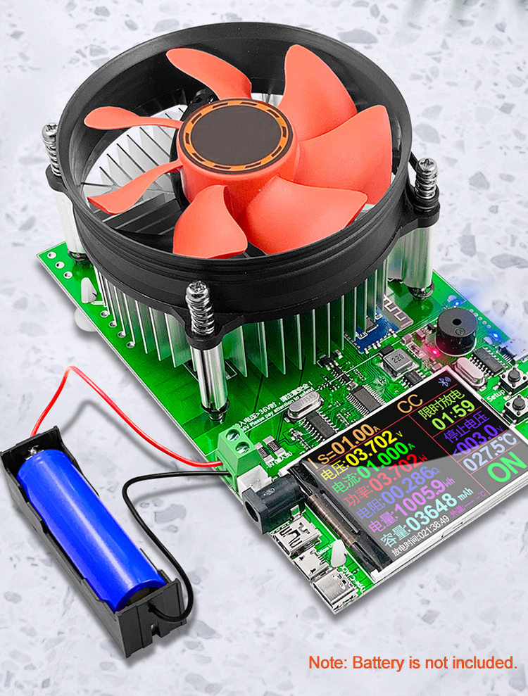 - Easily check the overall capacity of the battery. The discharge stop voltage can be set at will. Test various data such as voltage, current and capacity of various lithium batteries/batteries. Long-term 180W load discharge aging test, the temperature is 50-80℃. Using intelligent temperature control light effect fan, built-in large discharge tube, more powerful and more reliable. Test the battery's overall capacity, usage time, aging performance, etc.