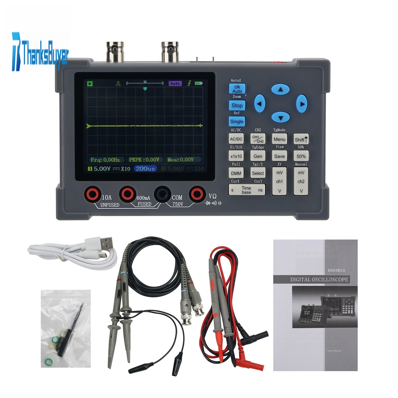 DSO3D12 3-in-1 120Mhz 250MSa/s Sampling 2 Channel Oscilloscope Multimeter Signal Generator Machine