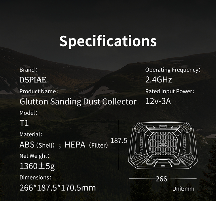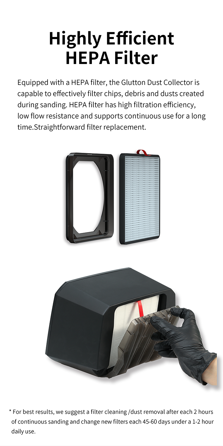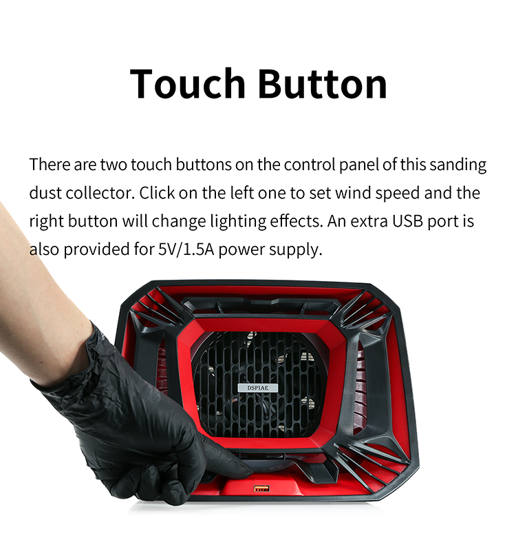 DSPIAE T1 ABS Sanding Dust Collector Glutton with Highly Efficient HEPA Filter Adjustable Speed