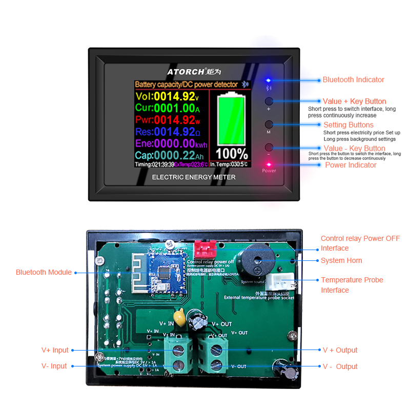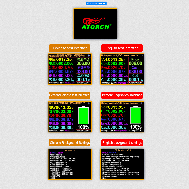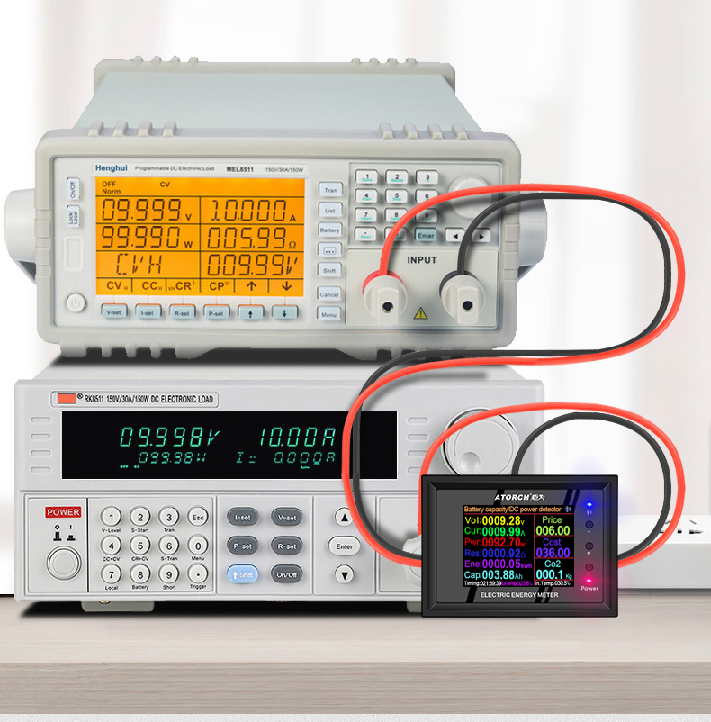-Battery capacity/DC power supply tester: suitable for various power adapters, batteries, constant current loads, power banks, etc., to test voltage, current, power, capacity, electricity, temperature, resistance, unit price of electricity supply, and cumulative electricity fee , CO2 and other parameters and operations.