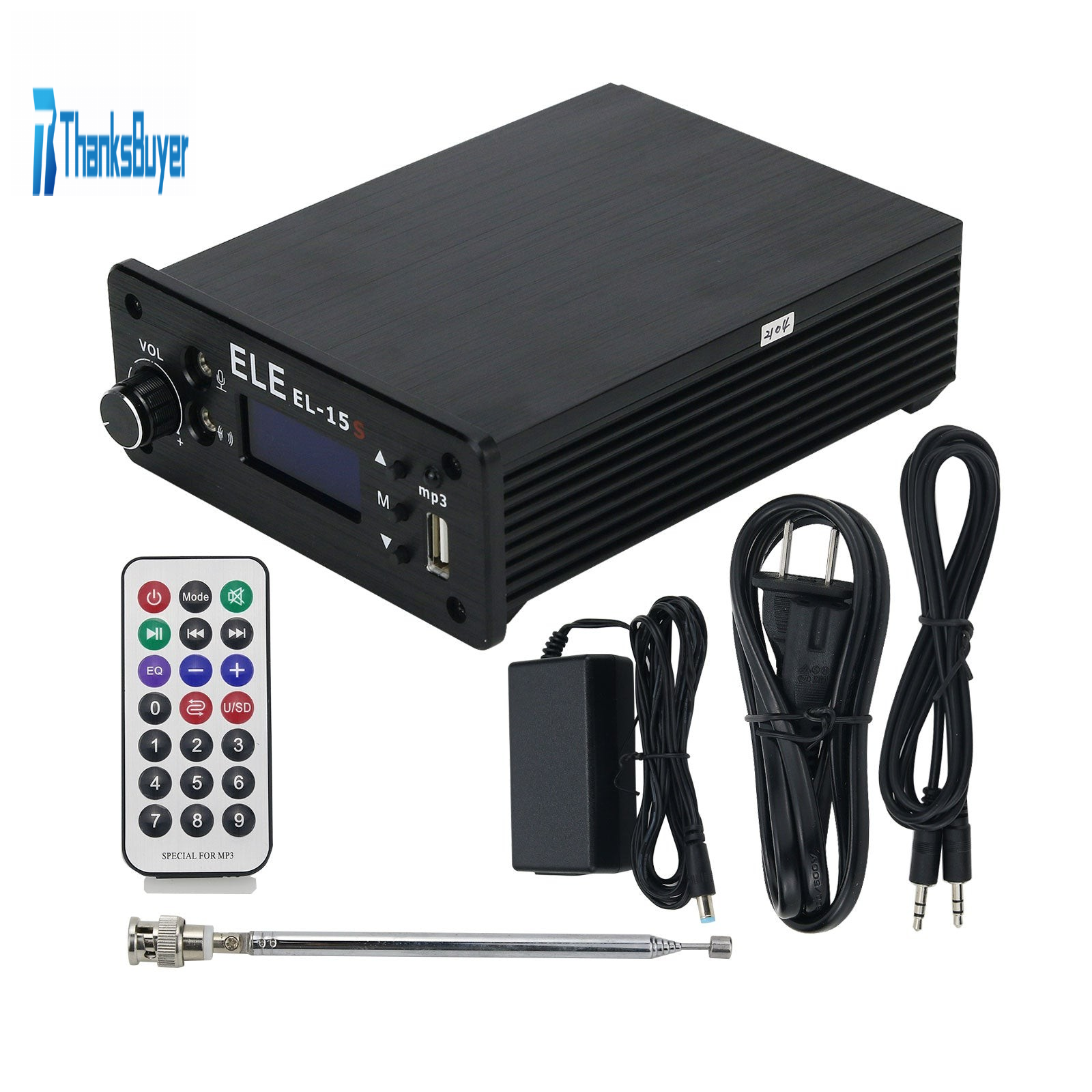 EL-15S FM Broadcast Transmitter Timing Wireless Broadcasting 0.1-7W w/ Antenna For U Disk MP3