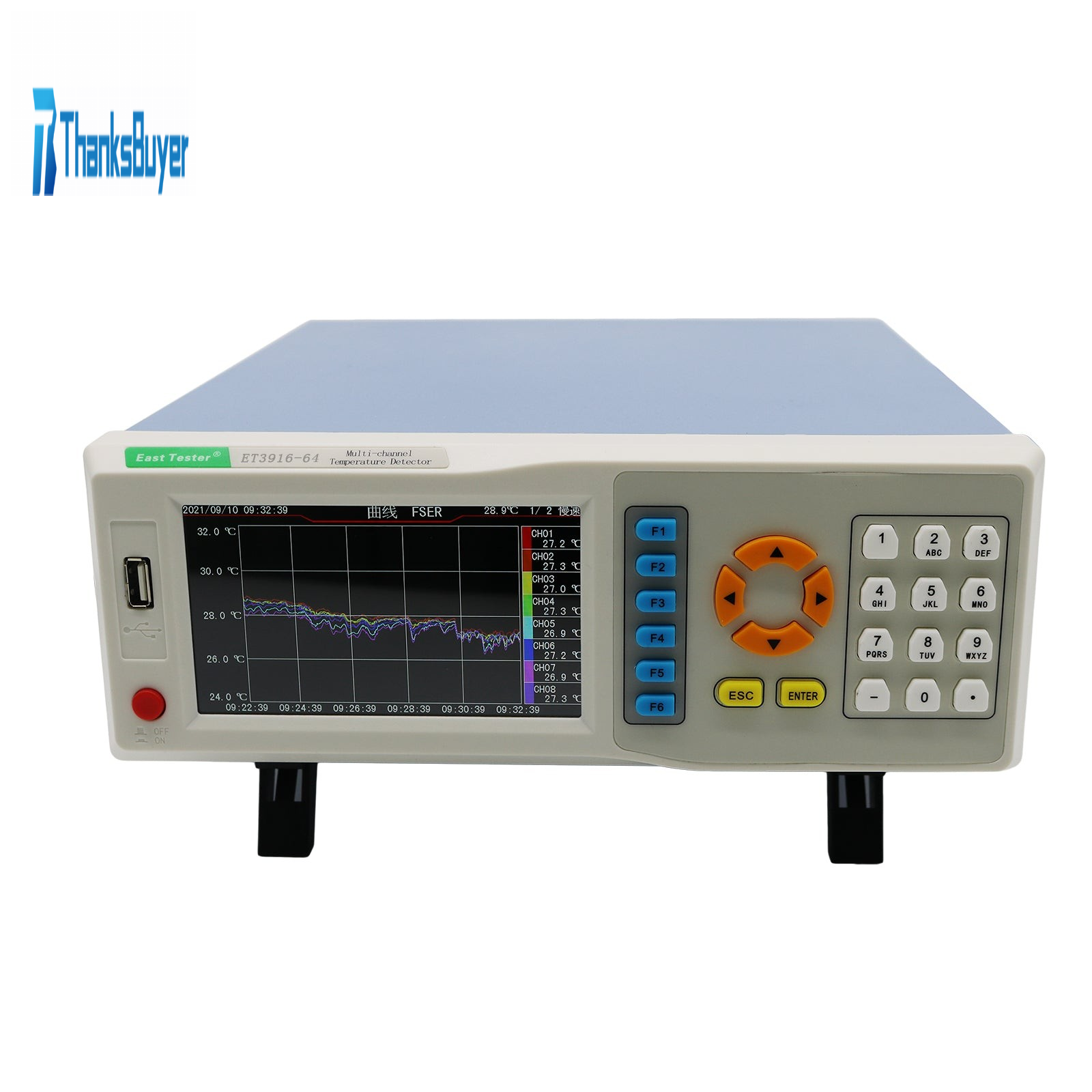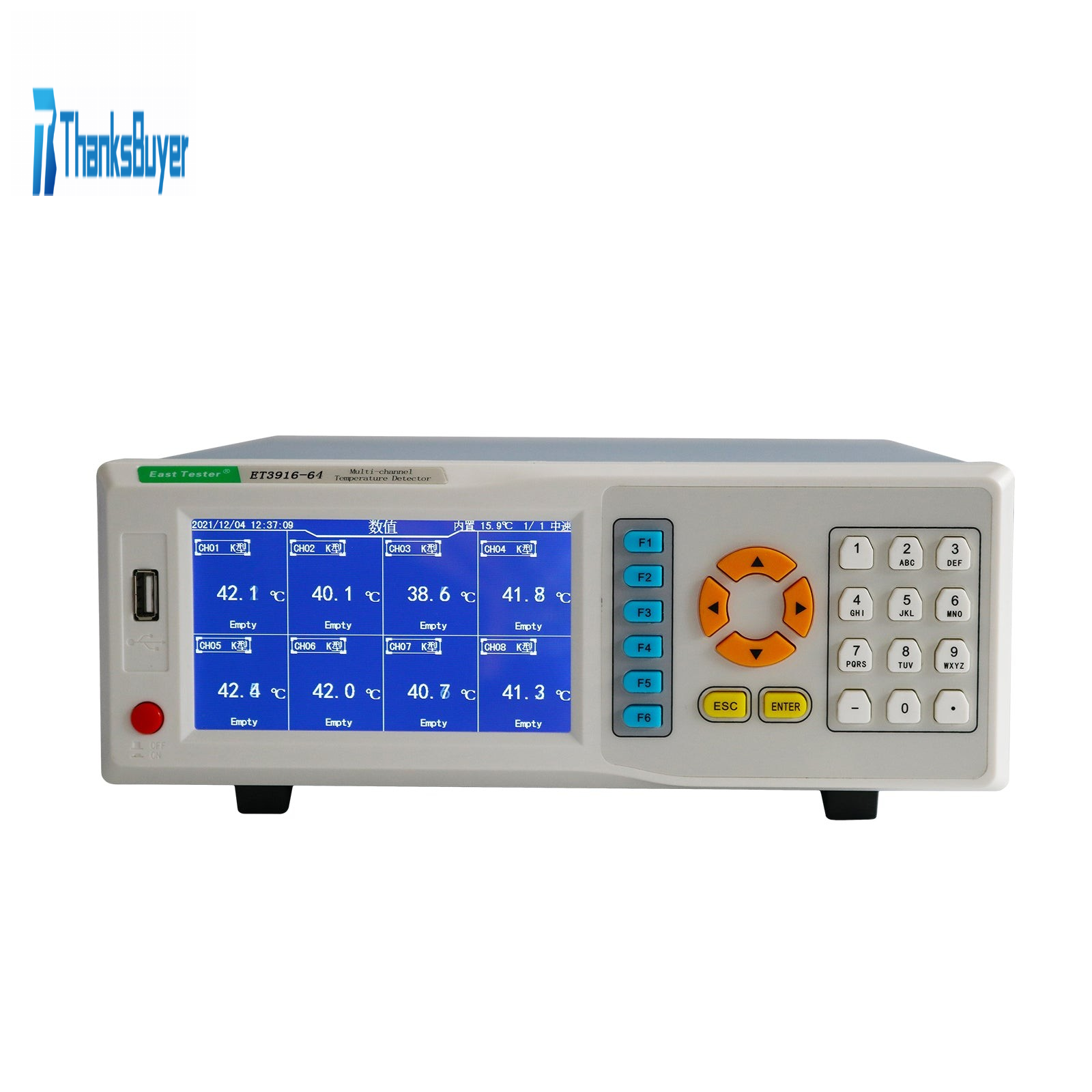 ET3916-64 Multi-Channel Temperature Detector 64CH Temperature Inspecting Instrument w/ 5" Screen