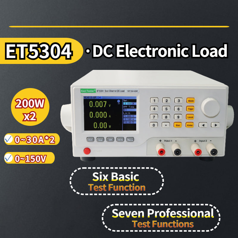 ET5304 Dual Channel DC Load 150V 30Ax2 200Wx2 Programmable Load Used in Charger Power Supply Tests