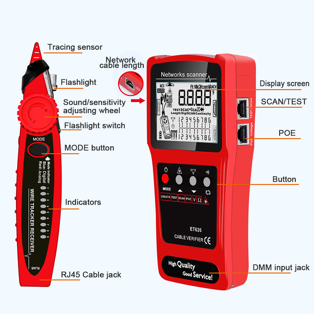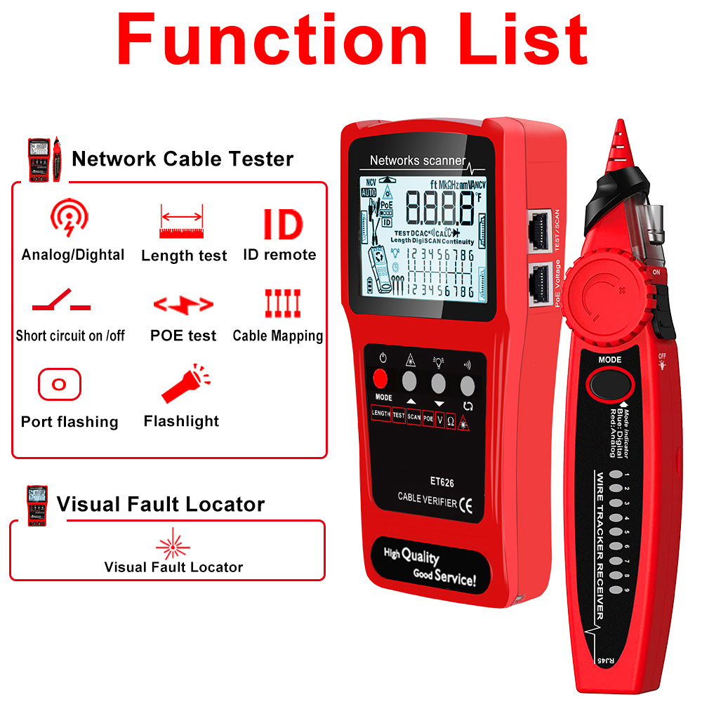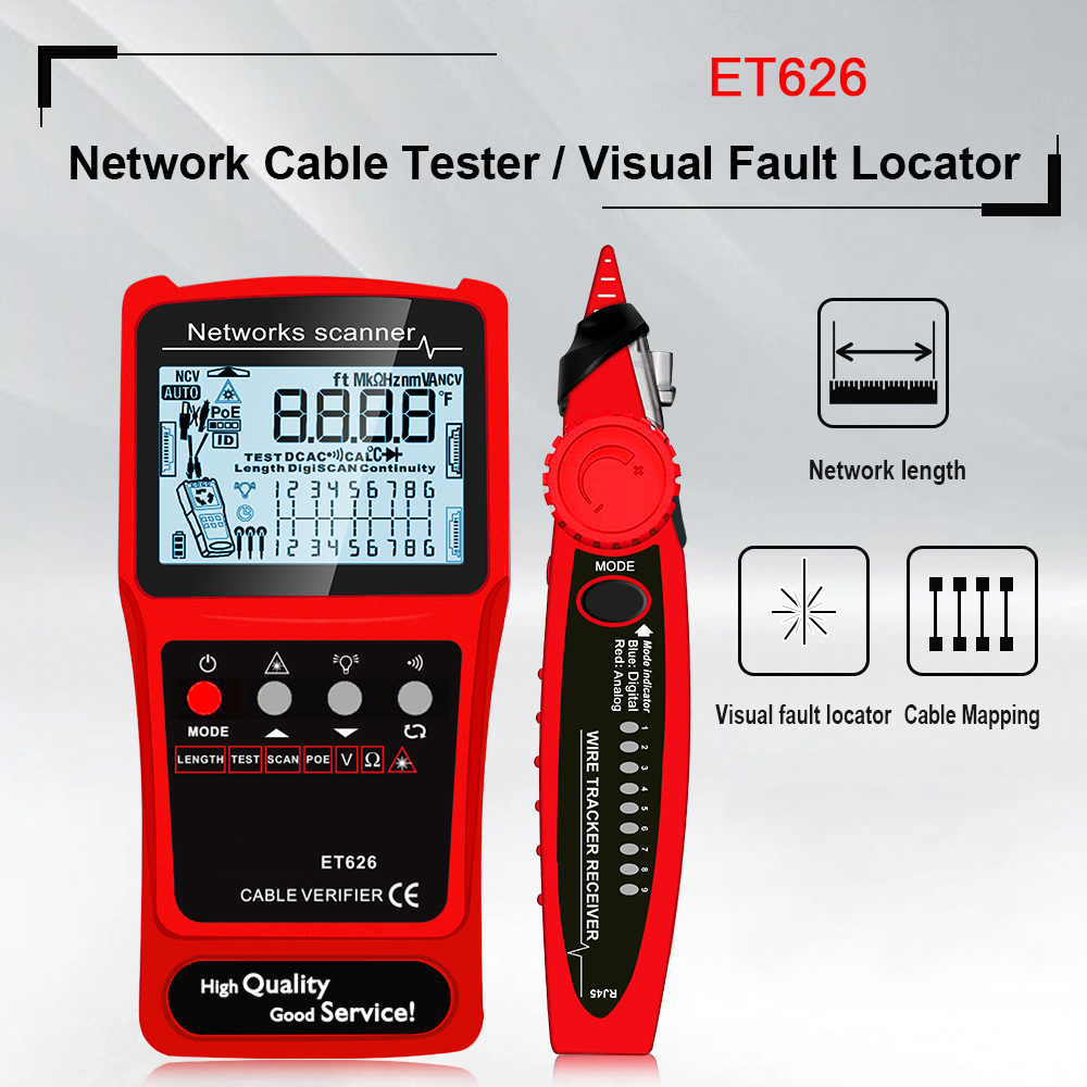 ET626 2-in-1 Network Cable Tester and Visual Fault Locator for Network Cable Length & Cable Mapping