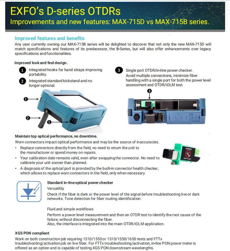 - Support iOLM: intelligent and dynamic application that simplifies complex OTDR curve analysis with just one click