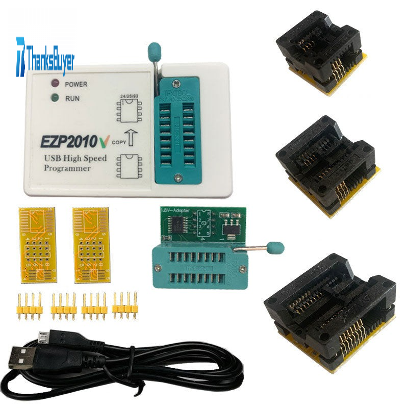 EZP2010V High Speed SPI FLASH Drive-free Programmer 24/25/93BIOS Programming Offline Copying + 3 SOP8 Bases + 1.8V Adapter Base