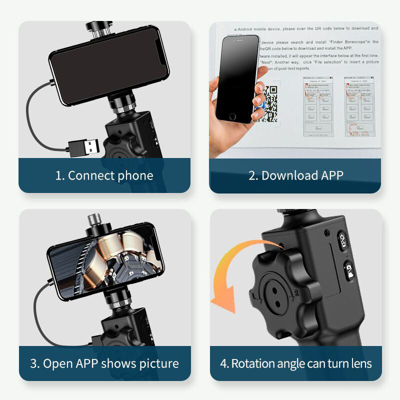 F408A 2MP Industrial Endoscope Borescope 8.5MM Rotatable Lens 1M/3.3FT Cable For Android IOS Phones