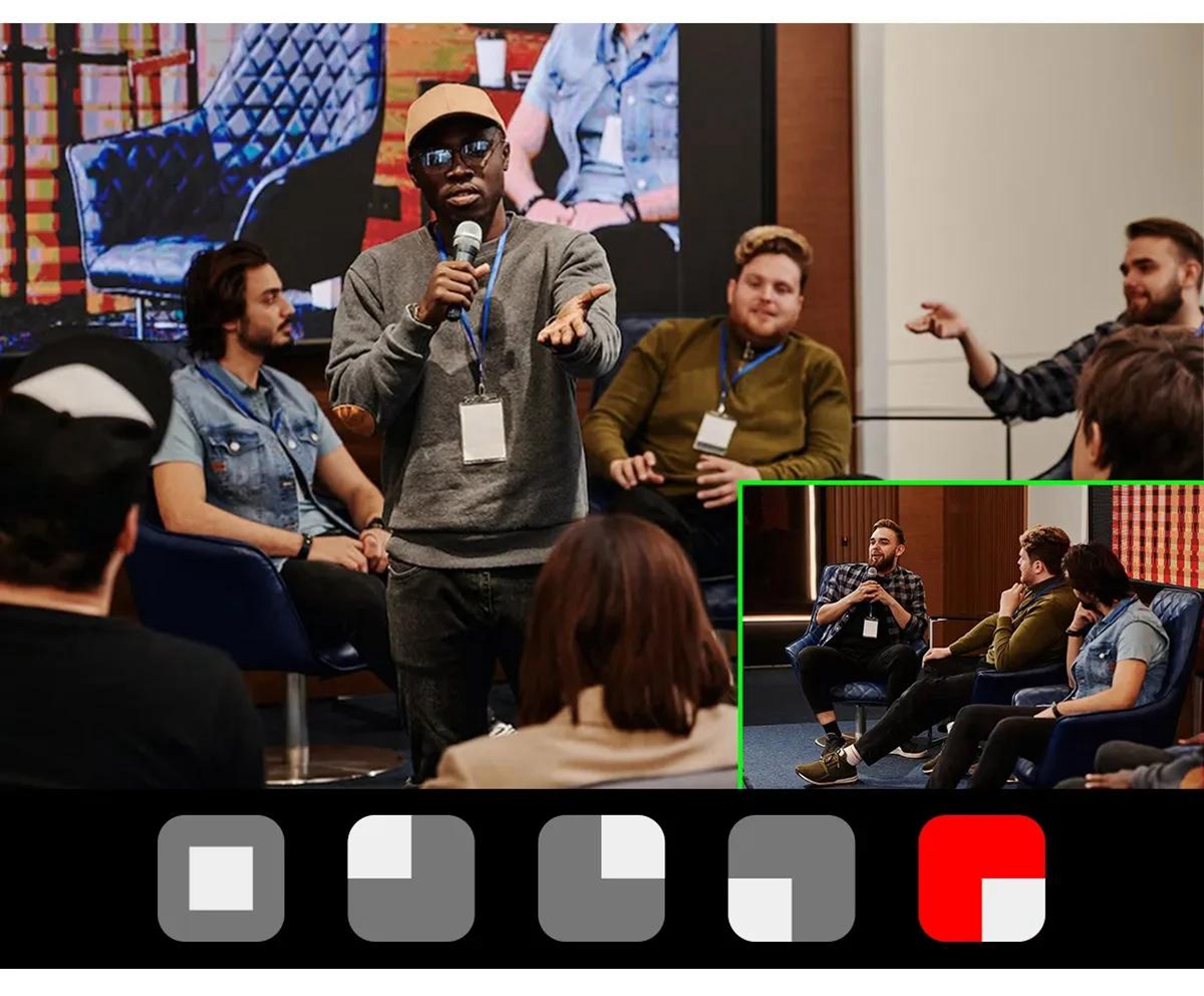 - One of the benefits of using L4 with a multi-camera setup is that you can use the Picture-in- Picture function to display two inputs at the same time. Any of the five inputs can be used for a Picture-in-Picture effect over the program output, with selecting your favourite mode (5 modes for optional). You can also exchange the sub picture and main picture quickly.