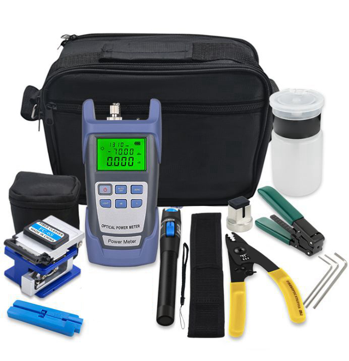 Fiber Optic Tool Kit FTTH Fiber Splicing Tools w/ Fiber Cleaver Power Meter 5KM Visual Fault Locator