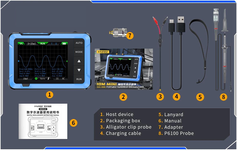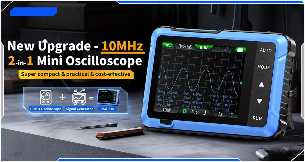 FNIRSI DSO510 10MHz Handheld Portable Digital Oscillator 48MS/s Sampling Rate High Performance Signal Generator