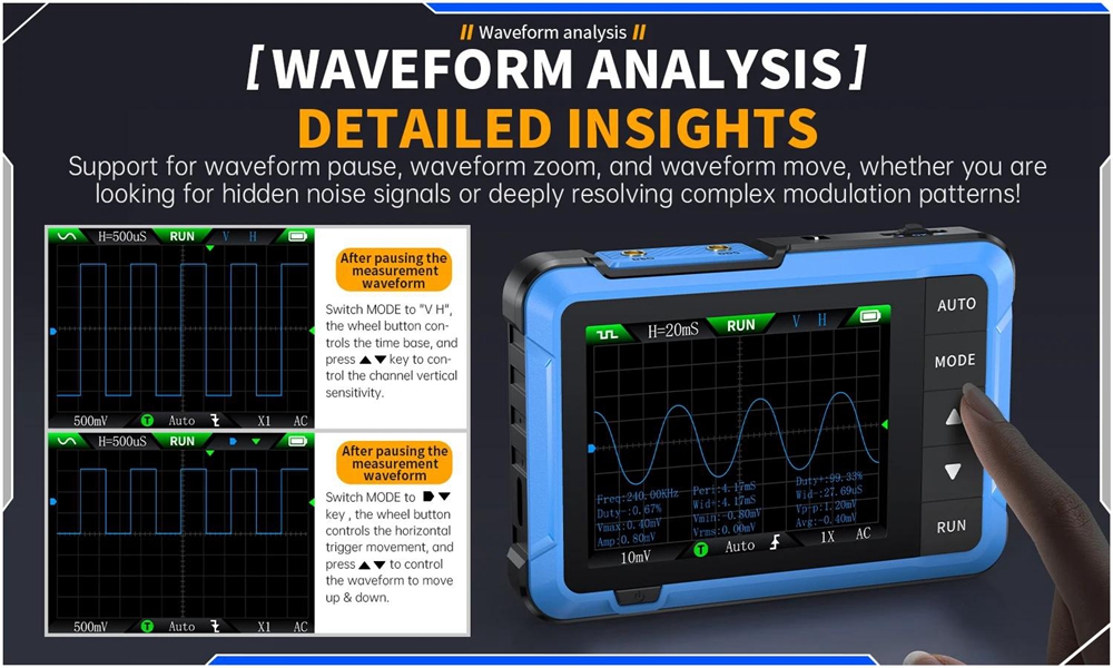 - One-click AUTO mode: Displays waveforms instantly without complex adjustments.