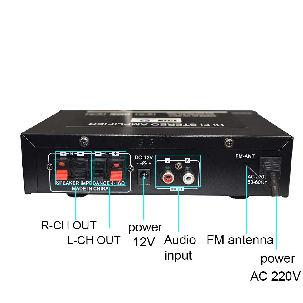 - Audio input: AUX seat behind the amplifier can be connected: to computer/MP3/DVD/ and other audio signals