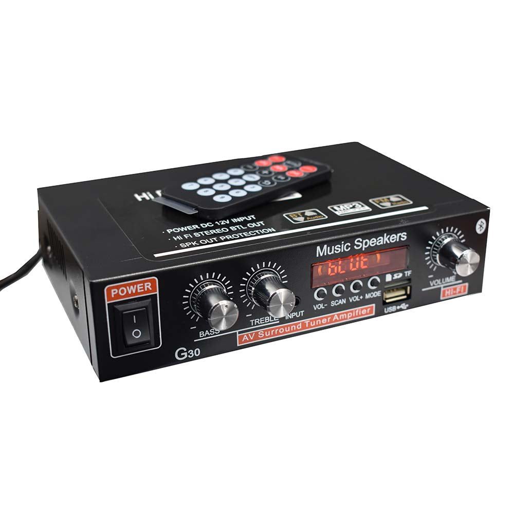 G30 12V Car Amplifier 2 Channel Bluetooth Power Amp Peak Power 180W+180W w/ Remote Controller