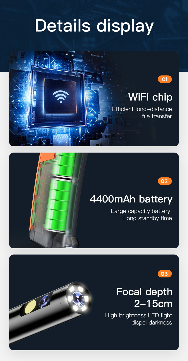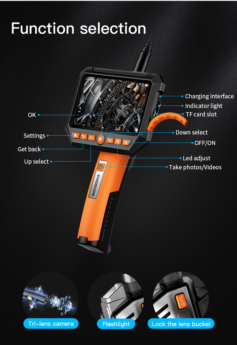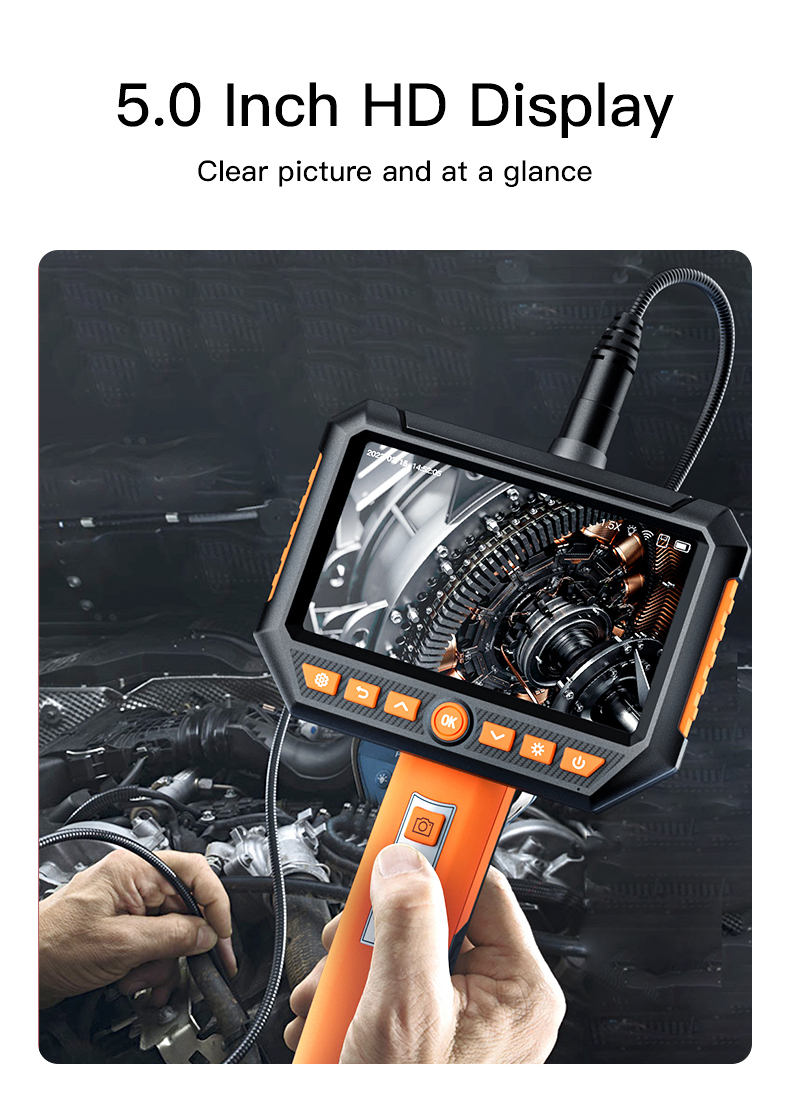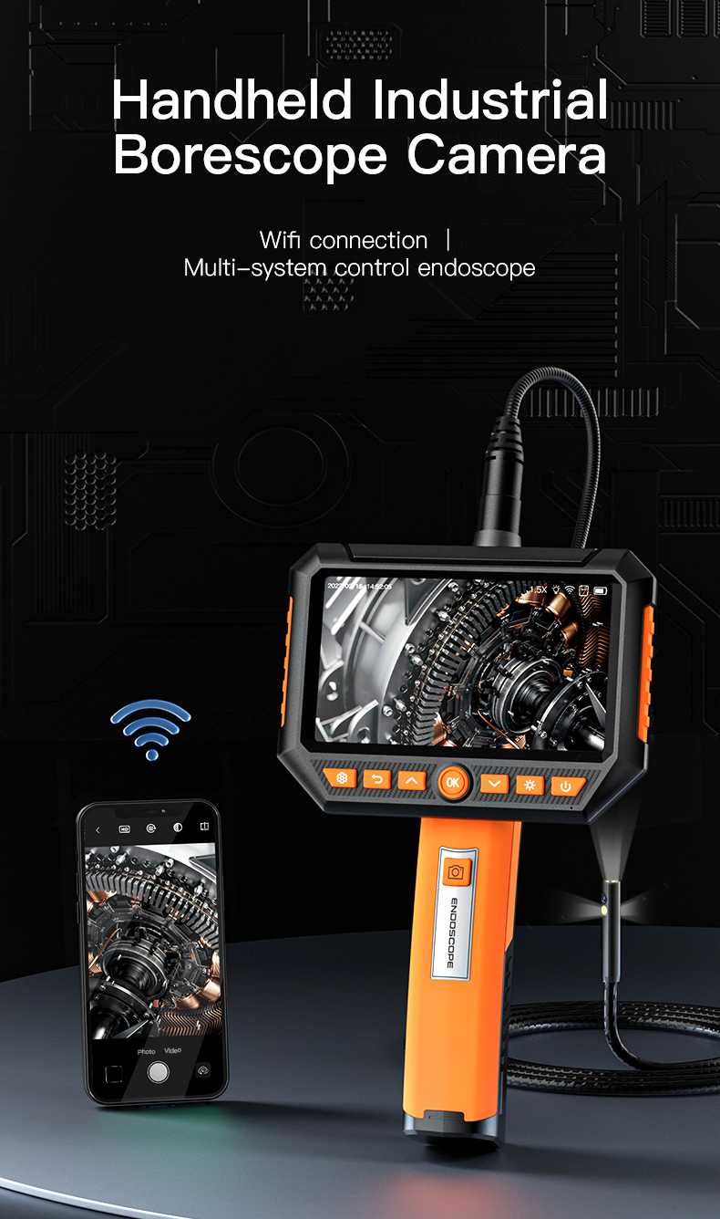 G5002-B 3-Lens Wifi Endoscope 2MP Borescope Industrial Inspection Camera with 5" Color Screen