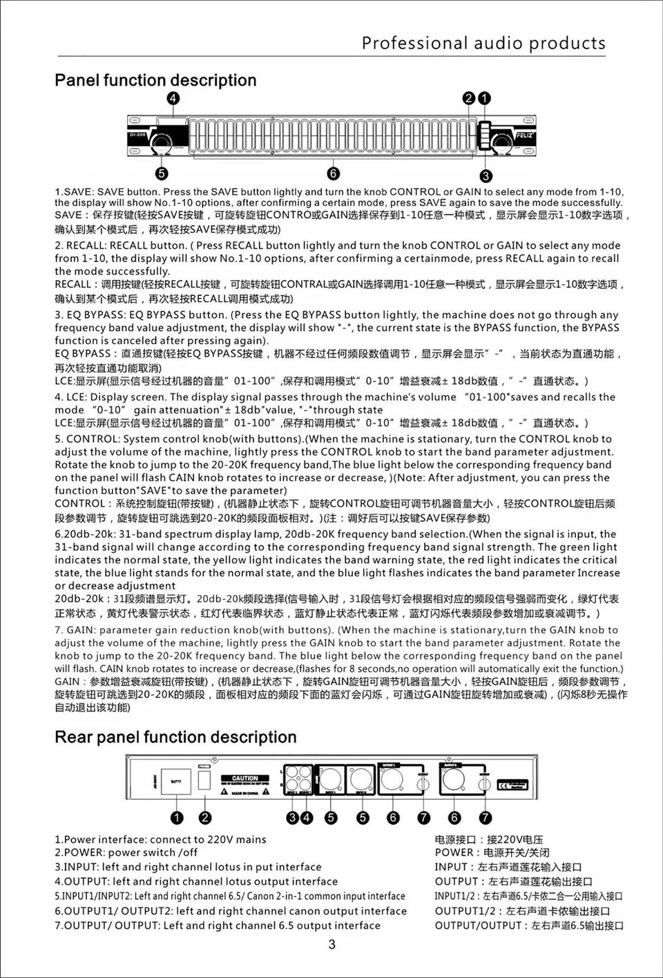 GAX-EQ777 Professional Electronic Digital Equalizer 31-band Graphic Stereo Equalizer 80Hz-15kHz 220V