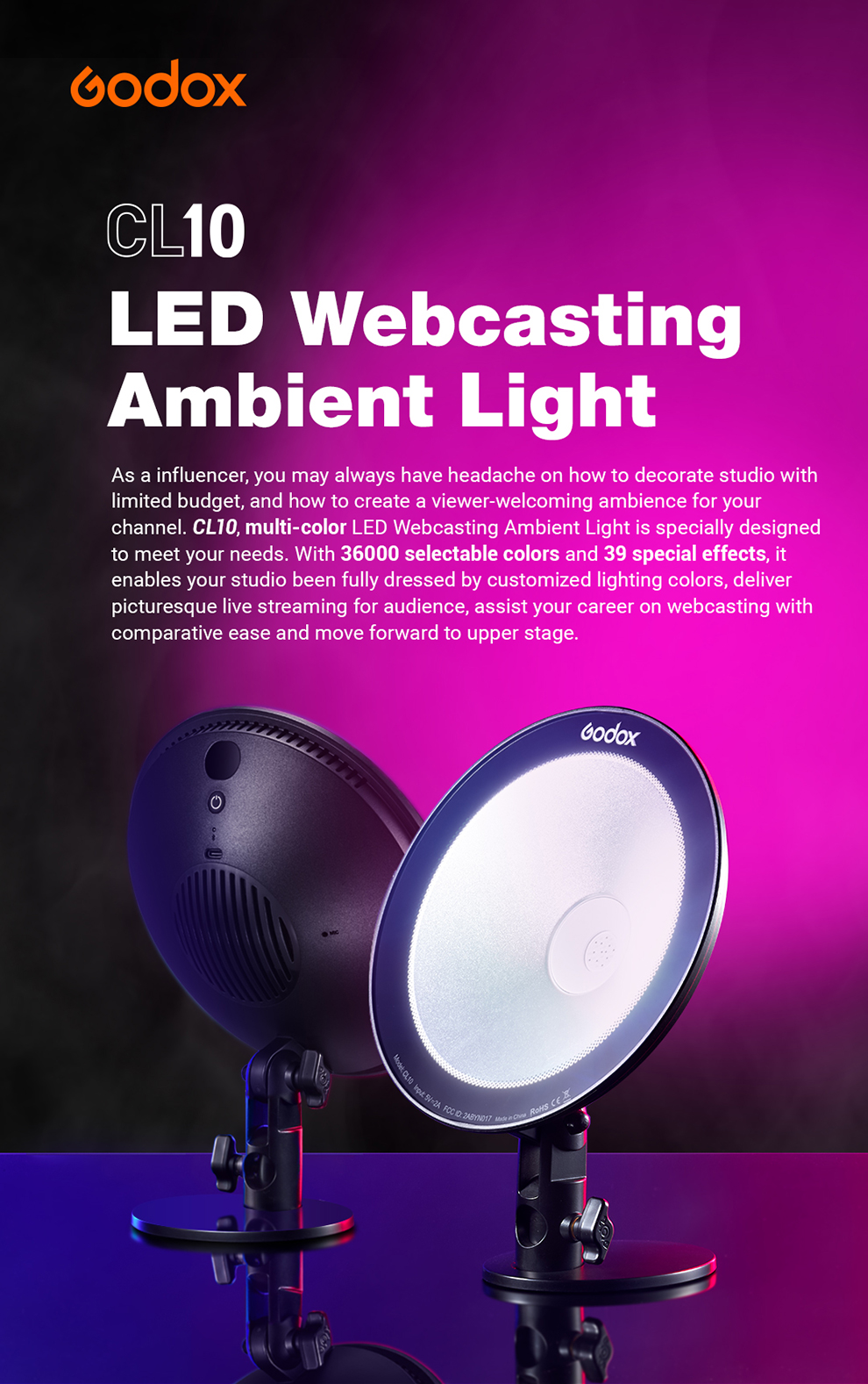 Godox CL10 LED Webcasting Ambient Light Photography Lighting Selfie Ring Light Dimmable For Studio