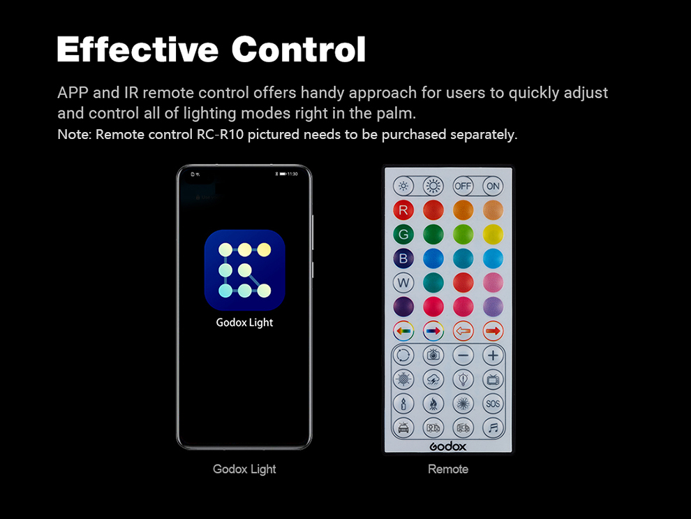 - Remote control RC-R10 pictured needs to be purchased separately.