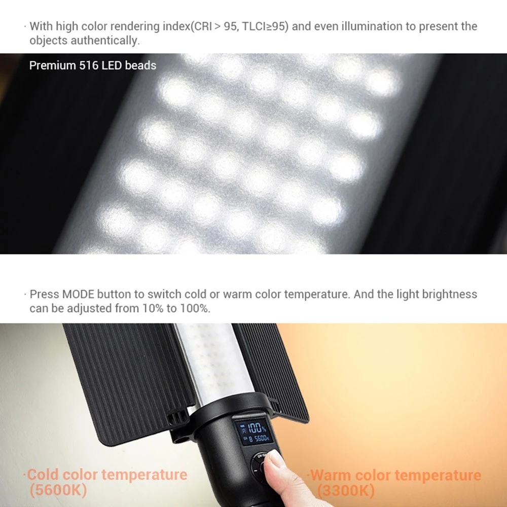 LC500 LED stick light has high brightness and dual color temperature adjusted separately. It is suitable for a wide range of scenes such as live broadcast, Selfie, still life shooting, wedding photography, outdoor camping, etc.