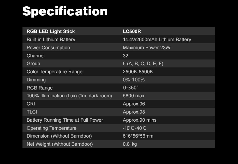 Godox LC500R RGB LED Light Stick Handheld RGB Tube Light 2500K-8500K CRI 96 TLCI 98 With Barn Door